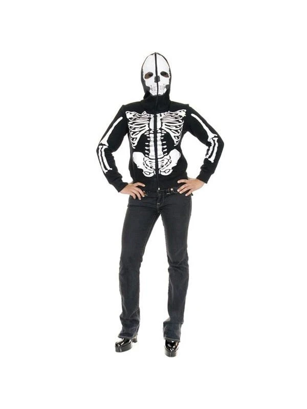 This women’s skeleton sweatshirt is a cool jacket for Halloween, or just to keep warm. Our skeleton hoodie features zip up that covers face with a scary skeleton face.