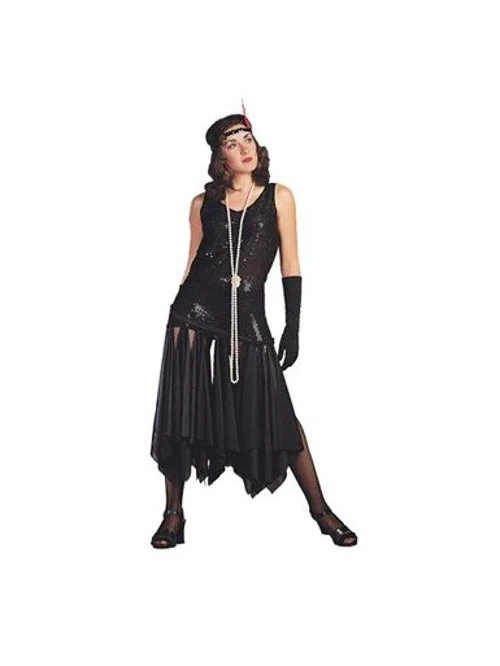 Adult flapper costume. This Costume includes a black 20’s flapper dress. Accessories include a matchin headband.