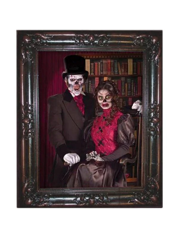 Freak out your guests with this haunted lenticular picture frame. Look at it from the wrong angle and you can see how the lovely couple looks today.