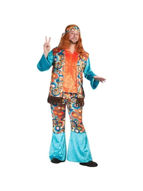Our men’s hippie outfit is a great 60s period costume. This 60s love child makes a great men’s Halloween costume idea and it goes great as a couple costume with any of our hippie costumes for ladies.