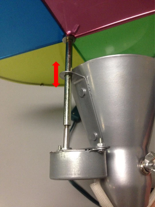 Sometimes the brackets that hold the motor and spinning shaft in place become tweaked. This will cause the shaft to stick and the wheel will stop spinning. If this occurs, you will need to adjust the motor bracket and/or the shaft guide. Please see additional photos for details.