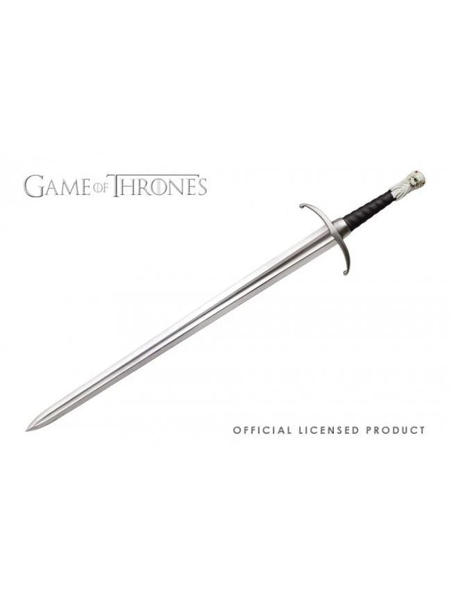 Now you can own this beautifully crafted replica of Jon Snow’s prop from your favorite HBO hit series Game of Thrones. The 35 inch blade is made from polished stainless steel, while the hilt is made with genuine leather. The pommel features an antique metal wolf with exquisite details, and red jeweled eyes.