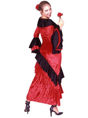 Our adult red senorita costume includes a red and black Spanish style dress.