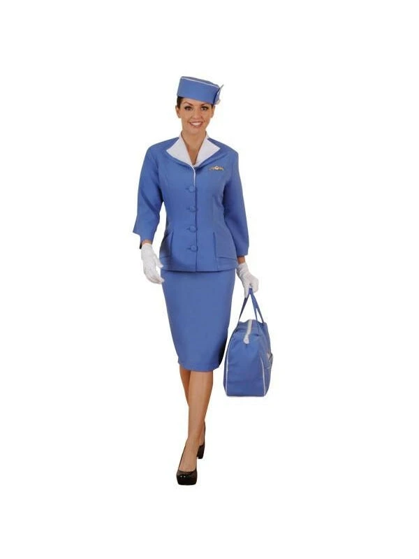 Life in the high skies was glamorous and exciting with its endless and exotic destinations. Relive just a little bit of Americana with this beautiful blue flight attendant costume dress. This outfit is based on the iconic designs of the 1960s this dress has the same blue fabric and pencil skirt of the famous Pan Am stewardesses.